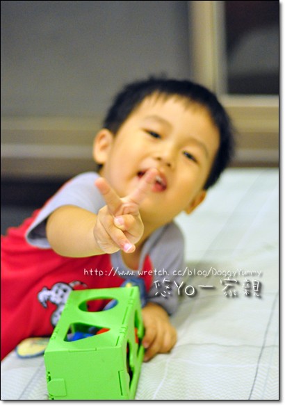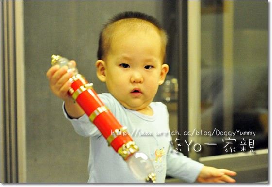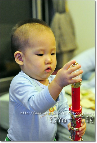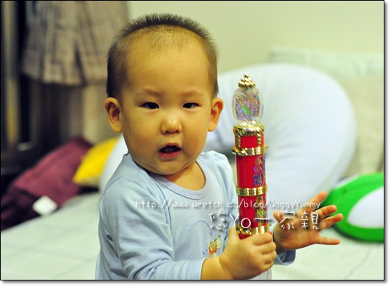 YOYO第一個拿的東西---麥克風(他其實是支仙女棒,玩具麥克風被我拿去騙小孩了)
